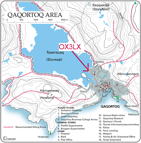 6m: around 40 QSO and 2 new 1st OX qso's who was HI3 and PJ2, hrd only weak EU videos from Norway 2 times very weak, all my QSO was to NA and Caribbean. In the period I was in Greenland prop. was down and not very good at all.